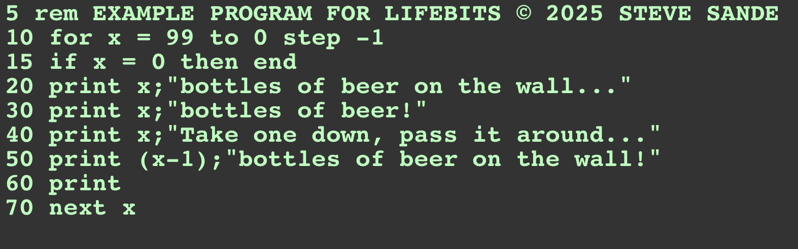 My upcoming not-so-secret project is to get this same BASIC editor/interpreter (HotPawBasic) in the flavor that runs on a Raspberry Pi single-board computer, then write some programs that will actually have utility that I can run on a sub-$100 computer in our RV. That sounds like a future LifeBits article to me…