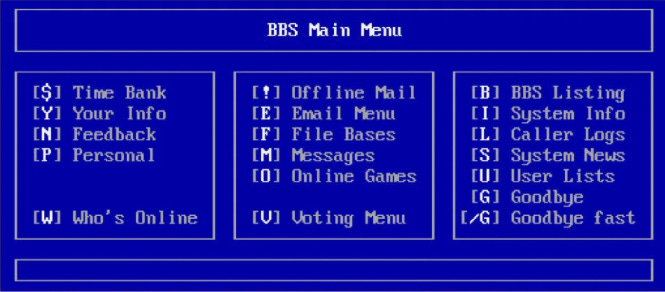 The early BBS menus were quite similar in how they looked and operated. This was all text-based, although later BBS hosting software provided Mac users with the familiar graphical interface.