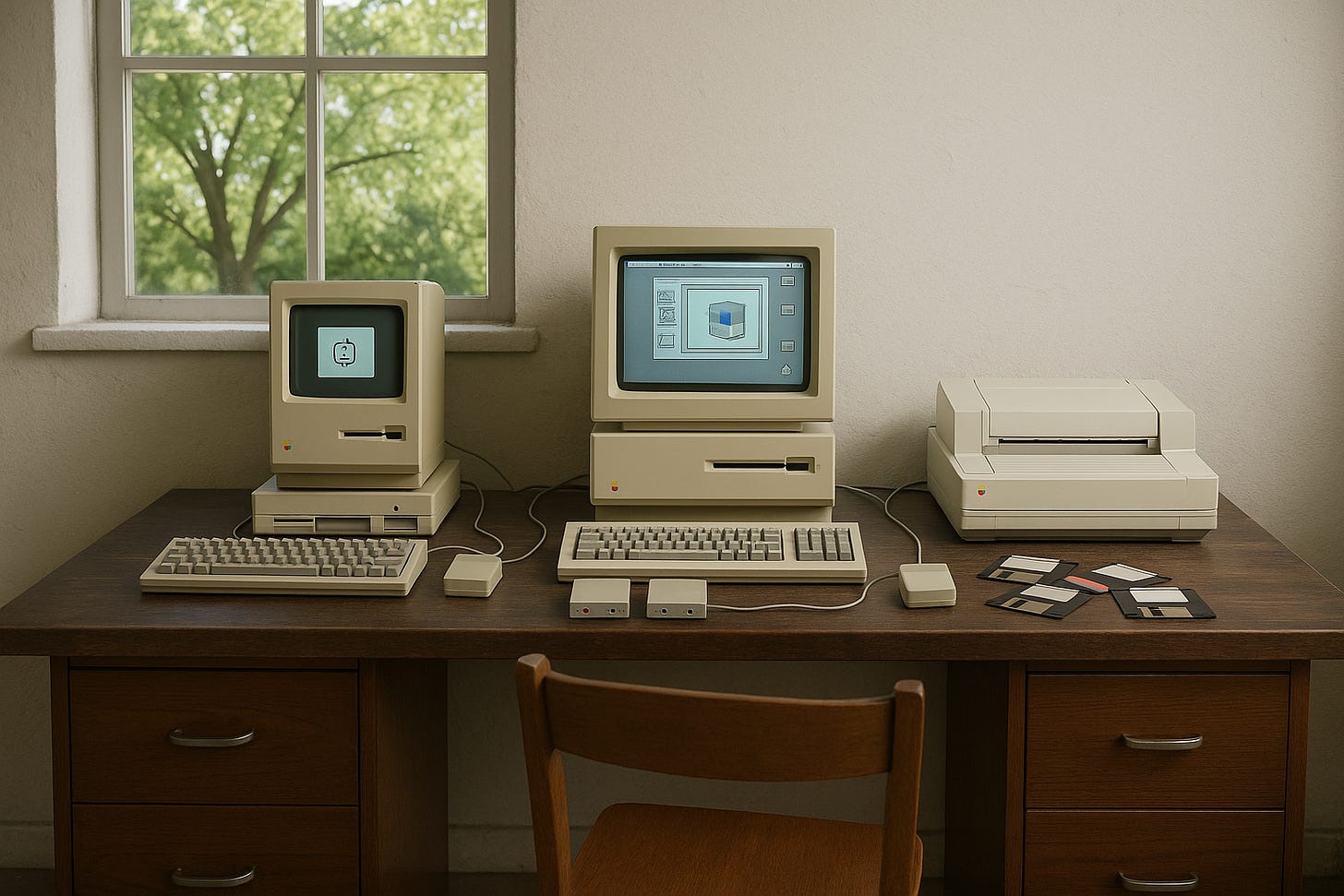 A weird AI “dream” of how my office may have appeared in the days of the MAGIC BBS. Image generated by ChatGPT (OpenAI) using the DALL·E model.