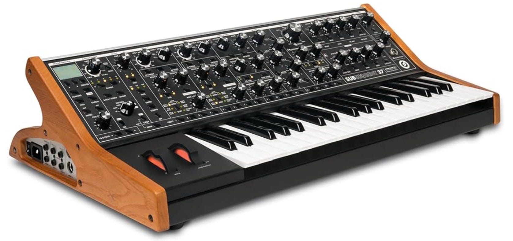 The mental image that most of us have of a synthesizer probably goes back to Keith Emerson (Emerson, Lake, and Palmer) or Rick Wakeman of Yes sitting at a keyboard near a huge patch board with wires dangling all over the place… or one of the newer MOOG machines like this $1,899 (in 2025 dollars) Subsequent 37 Paraphonic Analog Synthesizer and MIDI keyboard: