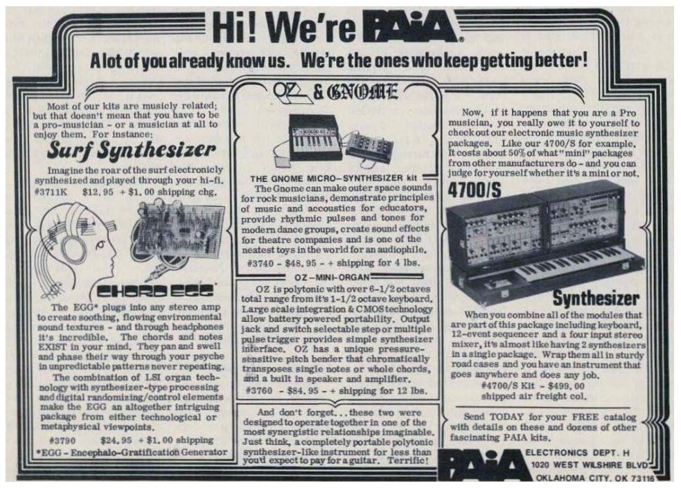 Advertisement image courtesy of Scott Lee, PAiA Electronics.