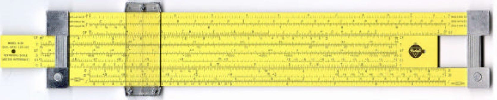One side of a Pickett Model 4 Slide Rule. Image via Michael O’Leary, International Slide Rule Museum.