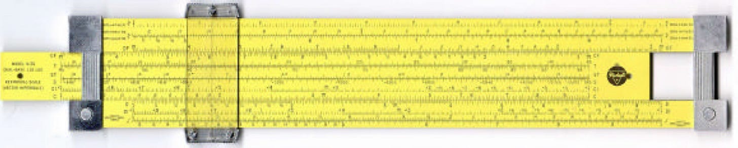 It’s not as if I really even needed a calculator my freshman year at C.U. Believe it or not, electronic calculators were forbidden in exams until my sophomore year. What did we use to do calculations during tests? Slide rules…